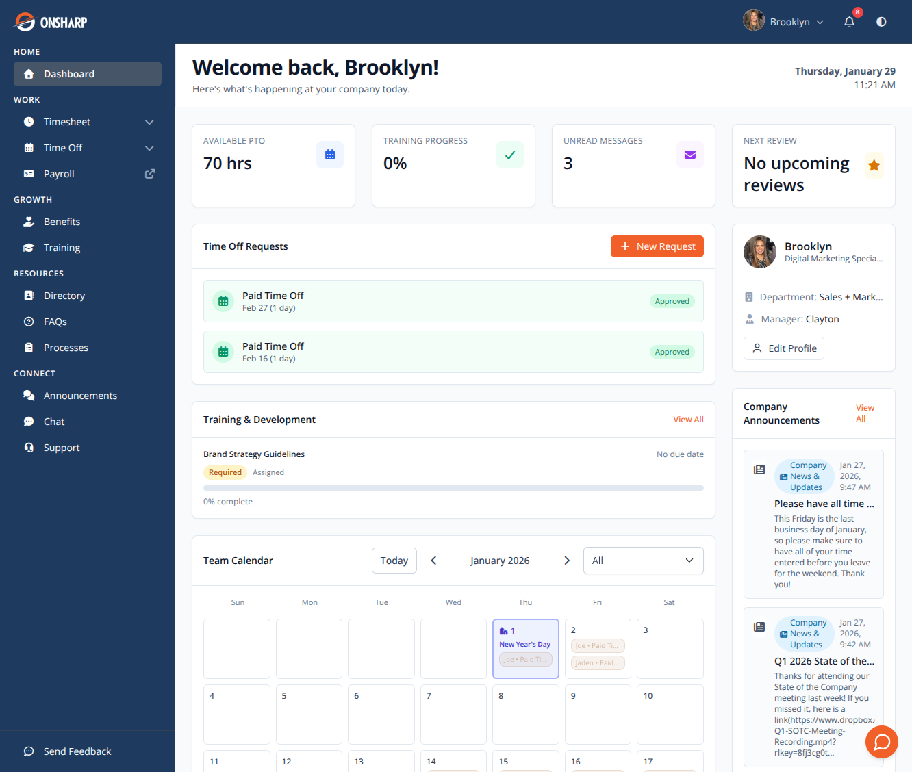 Employees can ask questions and get instant answers about policies, procedures, benefits, time off, and more. No more waiting for HR to respond to emails.